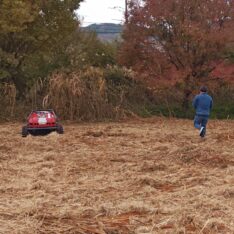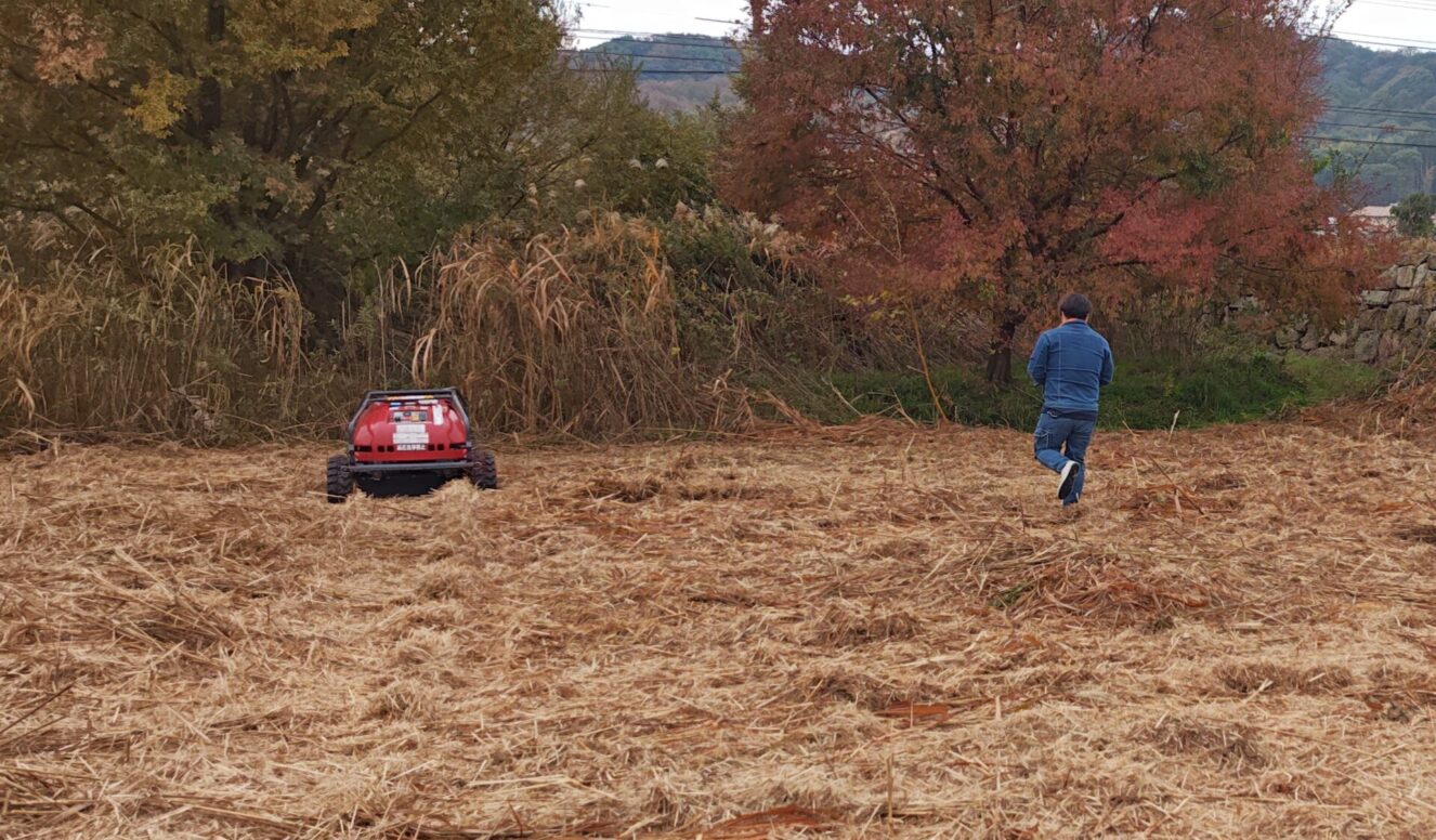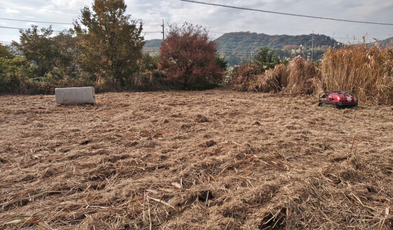 お客様からご依頼を受け、草刈りと木の伐採を行いました。今回の草刈りではハイブリッド式ラジコン草刈り機を使用しました。人力だと刈り終えるまで3日程必要になる範囲でしたが、ラジコン草刈り機を使用することにより、1日で刈り払うことが出来ました。